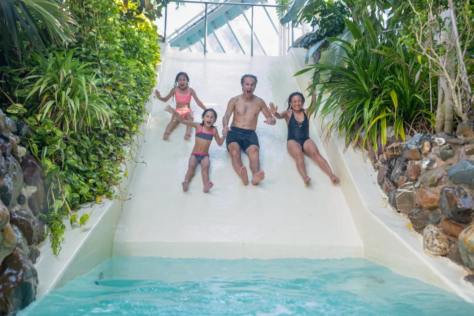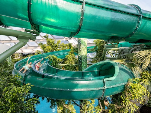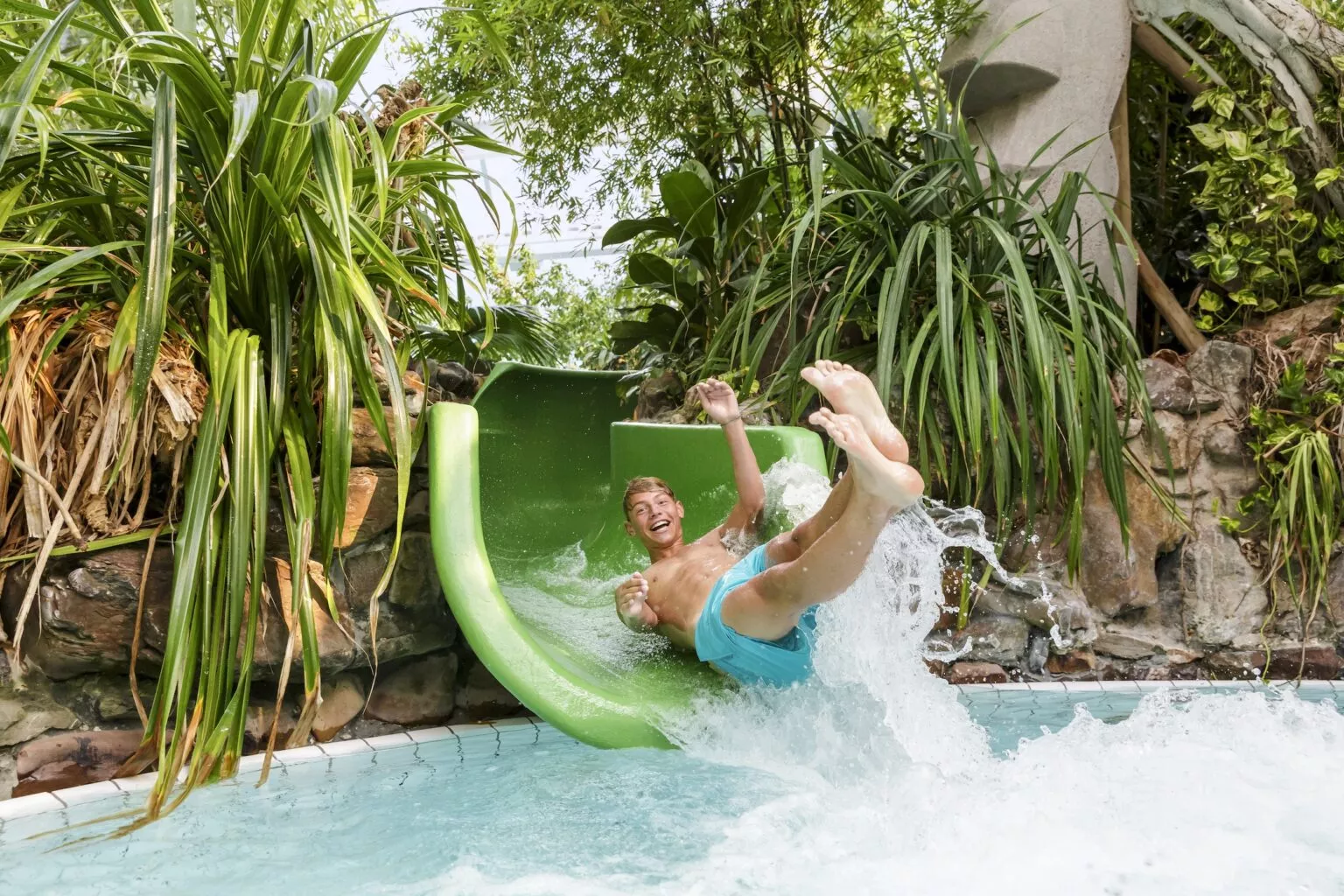 Ervaar de ultieme waterpret in Aqua Mundo, een subtropisch zwemparadijs uitgerust met drie spannende glijbanen en Nederland’s snelste wildwaterbaan. Geniet van het snorkelbad waar je tussen exotische vissen kunt zwemmen, of daag jezelf uit op de nieuwe Duo Racer glijbaan voor een spannende race. Voor de kleinere gasten is er een veilig kinder-doe-bad, compleet met jungle speeleiland en palmboomfonteintjes.